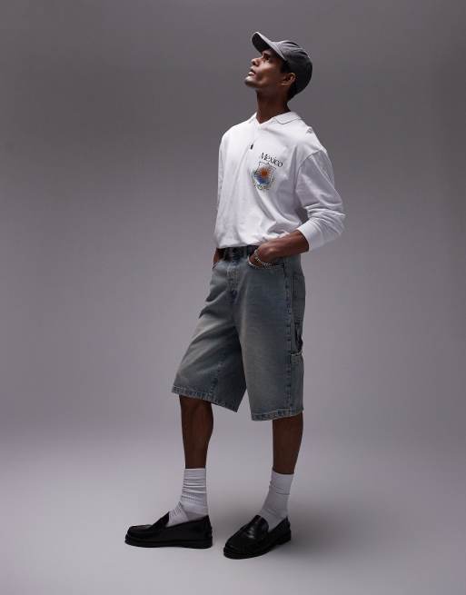 Topman oversized fit long sleeve polo t-shirt with Mexico print front and back in white