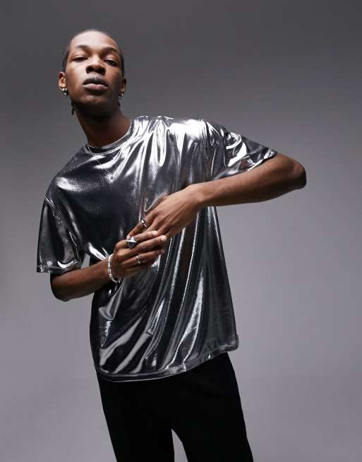 Topman oversized fit metallic t-shirt in silver