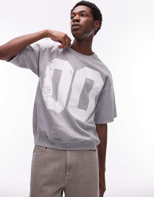 Topman oversized fit short sleeve sweatshirt with number print in grey marl