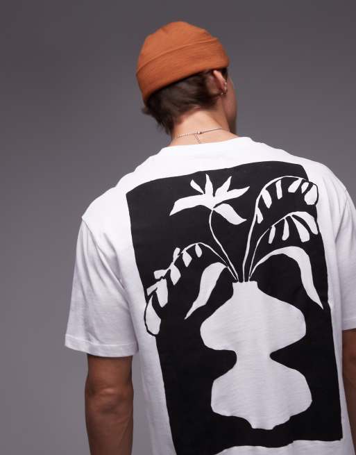 Topman oversized fit t-shirt with black vase block print in white