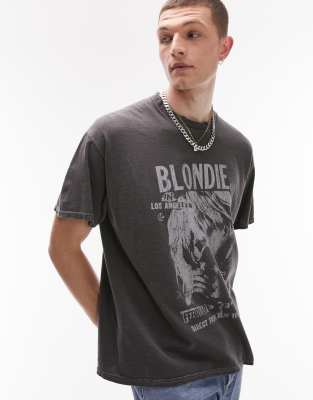 Topman oversized fit t-shirt with Blondie print in washed black