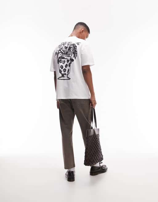 Topman oversized fit t-shirt with front and back floral vase print in white