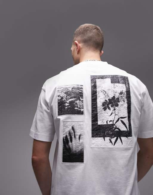 Topman oversized fit t-shirt with front and back placement patch in white