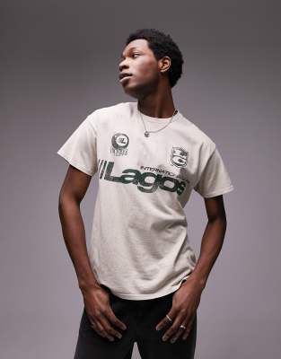 Topman oversized fit t-shirt with Lagos print in washed stone
