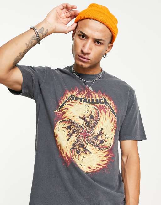 Topman oversized fit t-shirt with Metallica fire swirl print in washed black
