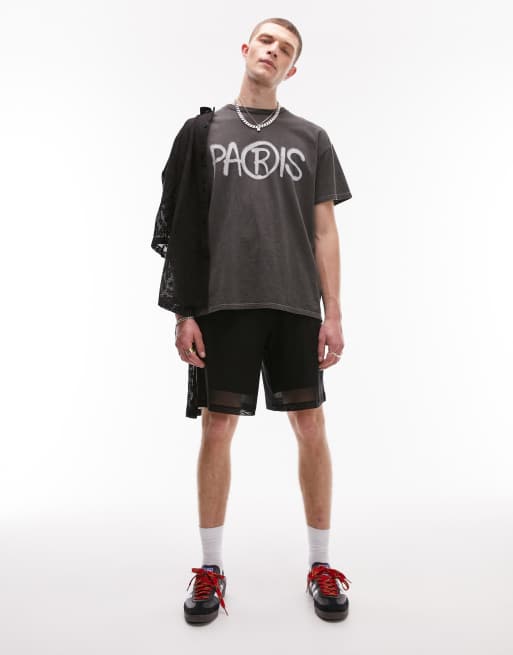 Topman oversized fit t-shirt with Paris graffiti print in washed black