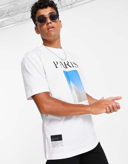 Topman oversized fit t-shirt with Paris print in white