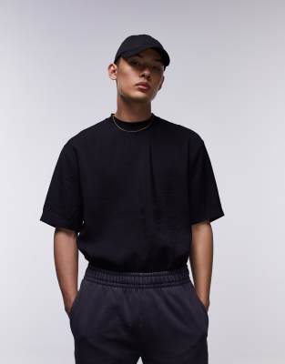 Topman oversized fit woven t-shirt with mid sleeve in black