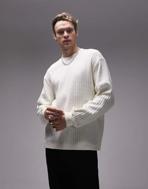 Topman oversized ladder sweatshirt in white