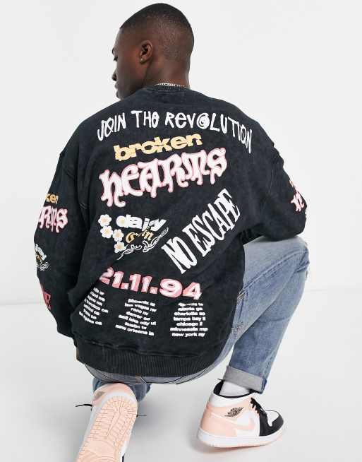 Topman oversized revolution grunge sweatshirt in washed black