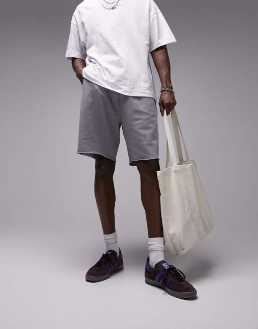 Topman oversized shorts with raw hem in washed grey