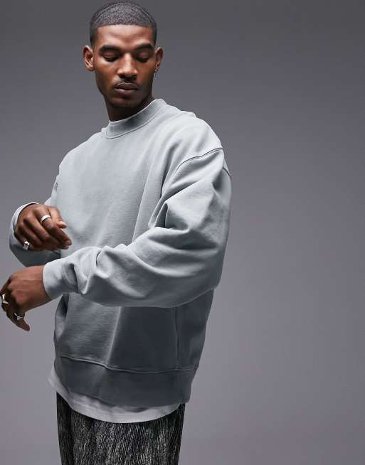 Topman oversized sweatshirt in washed sage