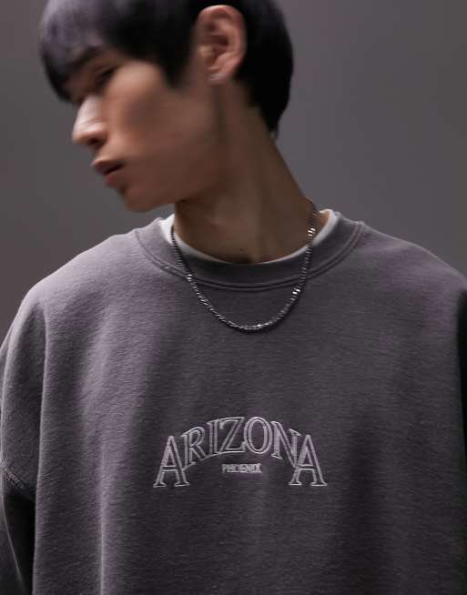 Topman oversized sweatshirt with Arizona embroidery in washed black