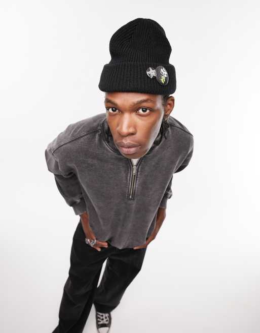 Topman oversized washed baseball sweatshirt in black