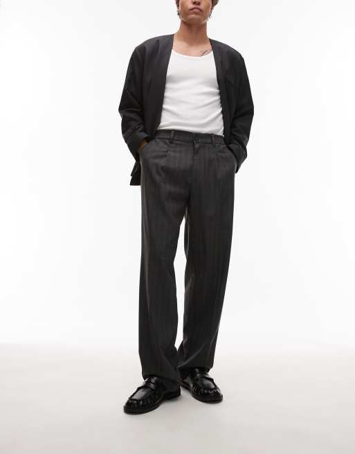 Topman pinstripe wide leg pants in light grey