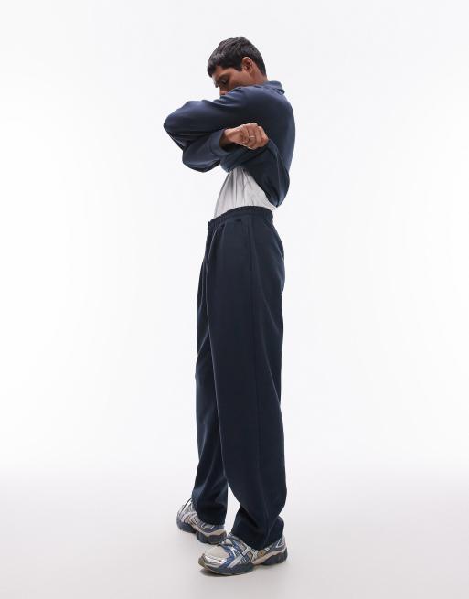 Topman pleat front straight leg trackies in navy