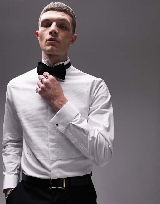 Topman Premium short sleeve slim wing collar formal shirt in white