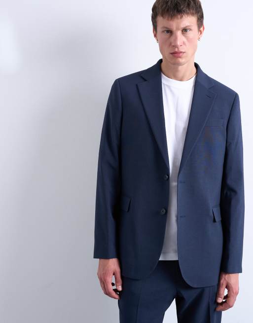 Topman relaxed wool touch suit jacket in navy