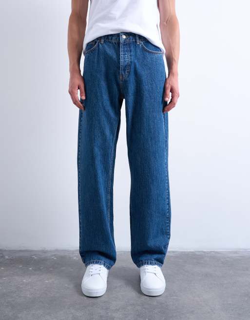 Topman rigid baggy jeans in mid wash