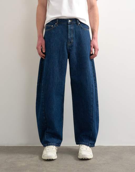 Topman rigid barrel jeans in dark wash