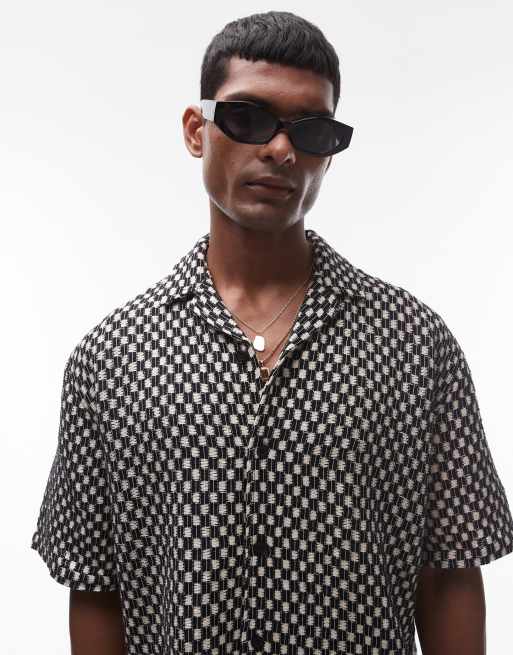 Topman short sleeve checkerboard shirt in black