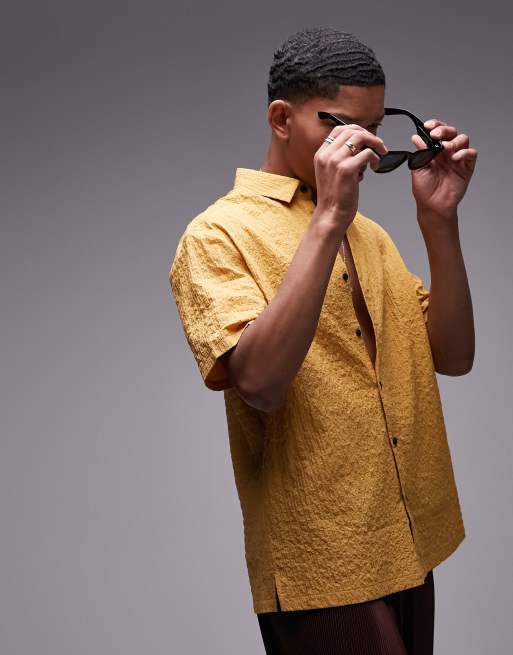 Topman short sleeve regular plain textured shirt in mustard