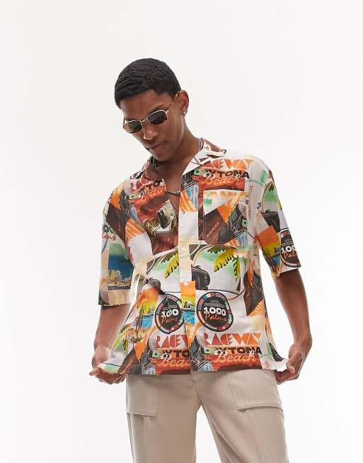 Topman short sleeve relaxed palm beach printed shirt in multi
