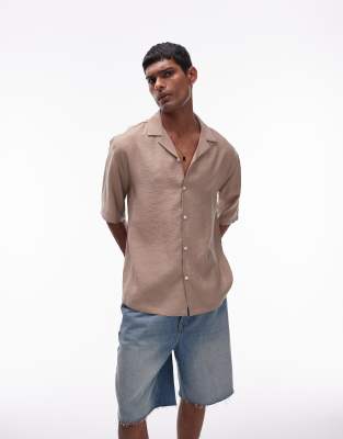 Topman short sleeve relaxed satin shirt in camel