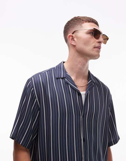 Topman short sleeve striped shirt in navy