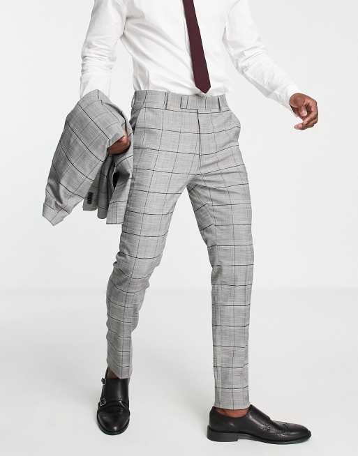 Topman skinny check wedding suit pants in black and white
