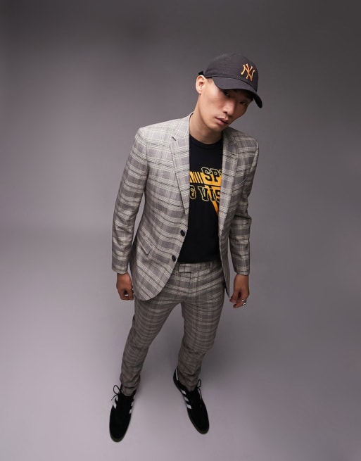 Topman skinny neutral checked suit in grey