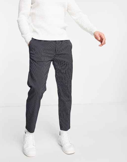Topman skinny striped pants with elasticated waist in navy