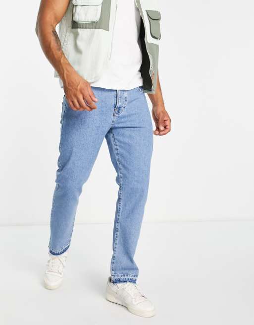 Topman straight let down hem jeans in mid wash
