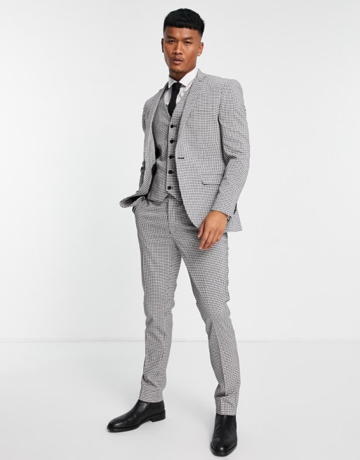 Topman three piece suit in dogstooth check