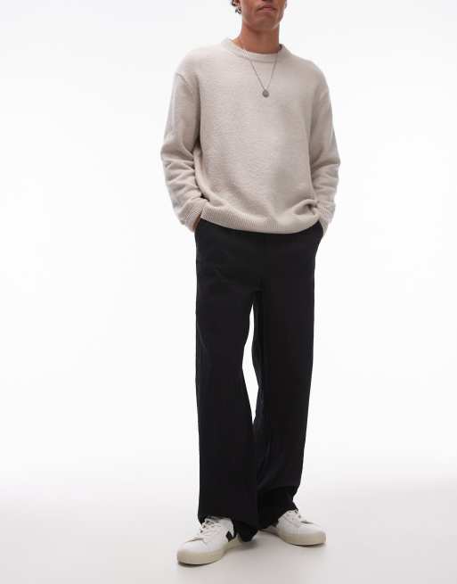 Topman wide leg textured pants in black