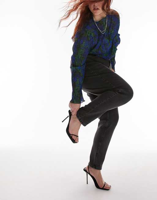 Topshop Curve comfort stretch mom jeans in washed black