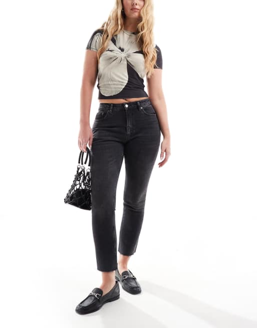 Topshop Hourglass mid rise straight cropped jeans with raw hems in washed black