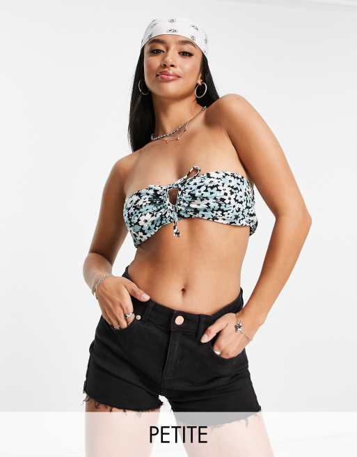 Topshop Petite ditsy ruched keyhole bandeau bralet in blue (part of a set)