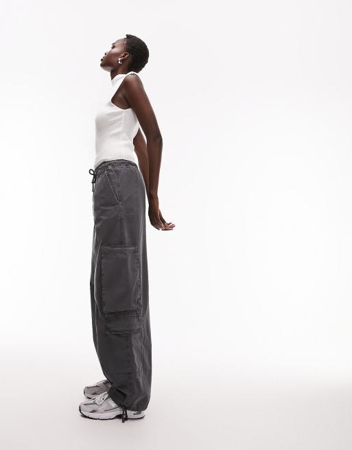 Topshop Tall balloon washed pull on pocket cargo pants in charcoal