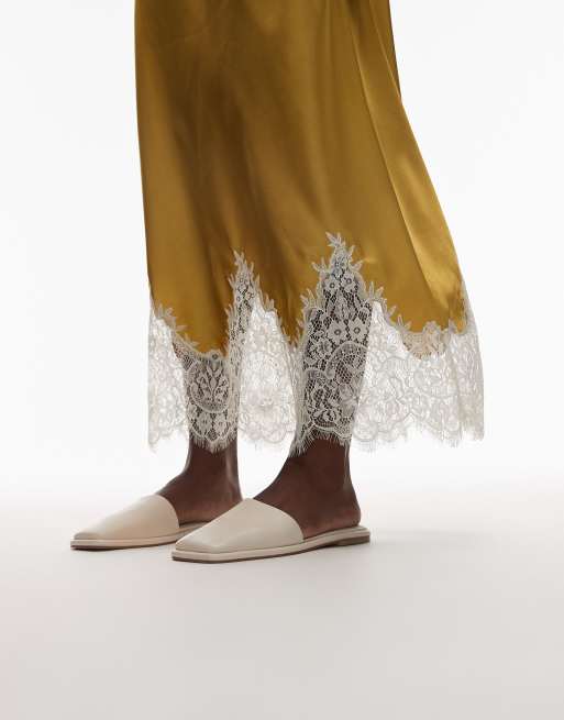 Topshop Almina real leather square toe mules in off white