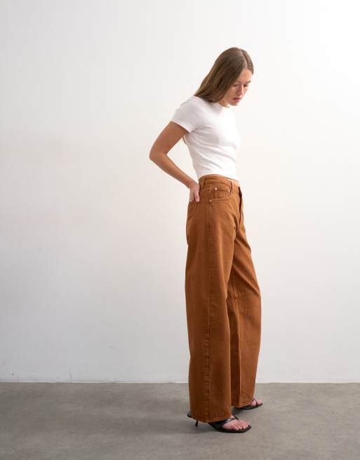 Topshop Barrel mid rise jeans in toffee