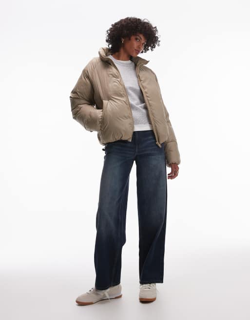 Topshop bomber puffer jacket in mushroom