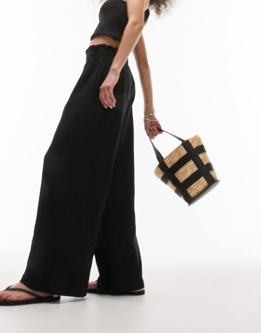 Topshop casual textured beach pants in black (part of a set)