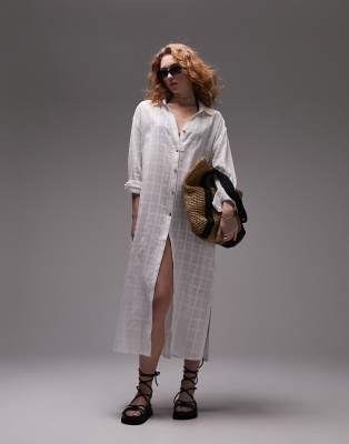 Topshop check beach maxi shirt in white