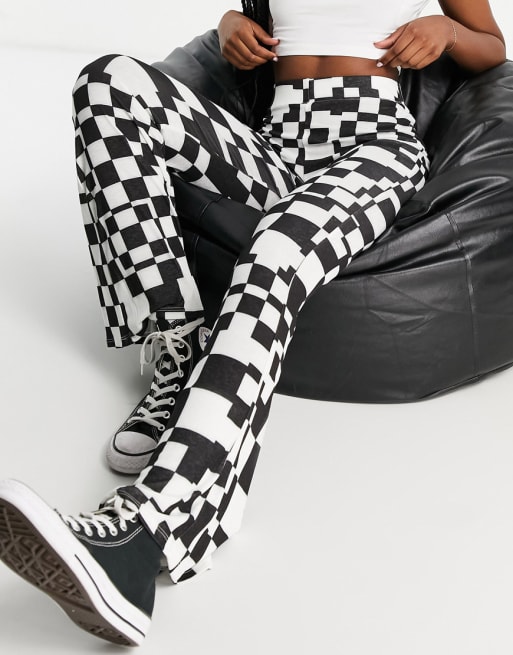 Topshop checkerboard tee and flared pants co-ord in monochrome
