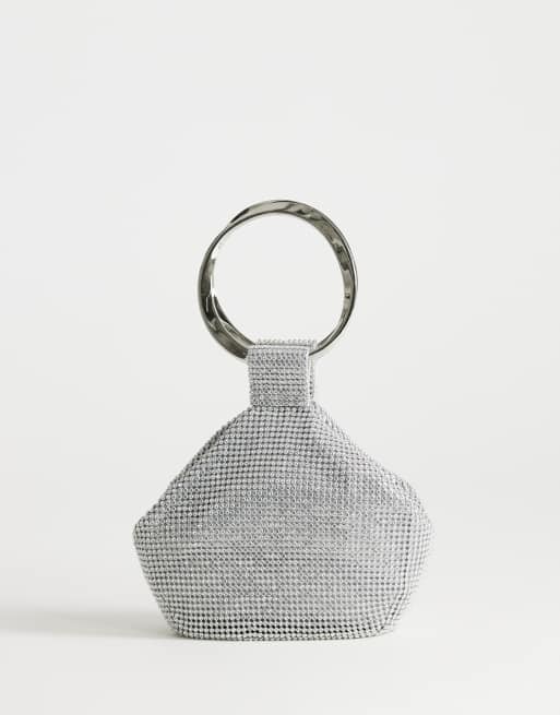 Topshop Cherry metal handle grab bag in silver diamante