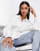 Topshop cinched waist poplin shirt in white