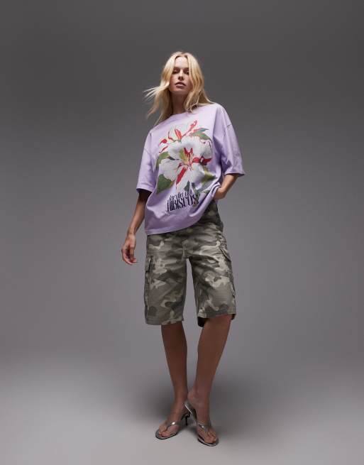 Topshop graphic hibiscus print oversized tee in lilac
