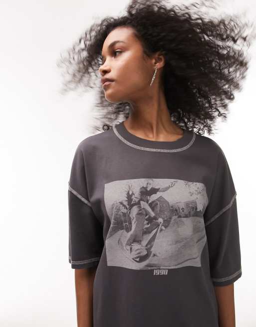 Topshop graphic licensed Museum of Youth Culture skateboarder oversized tee in slate