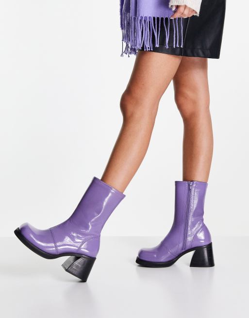 Topshop Harley leather sock boots in lilac